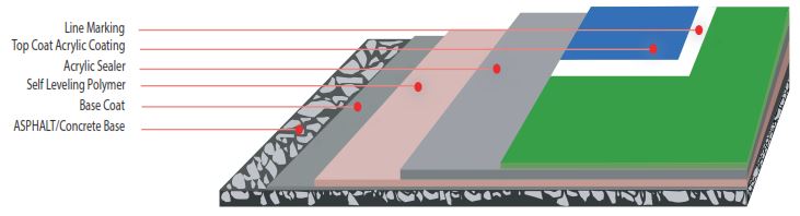 Lapangan dengan lapisan acrylic dan rubber yang ideal untuk lapangan tenis, basket, volley, dan lapangan olahraga lainnya baik indoor maupun outdoor dengan pilihan ketebalan lapisan 4mm dan 8mm.